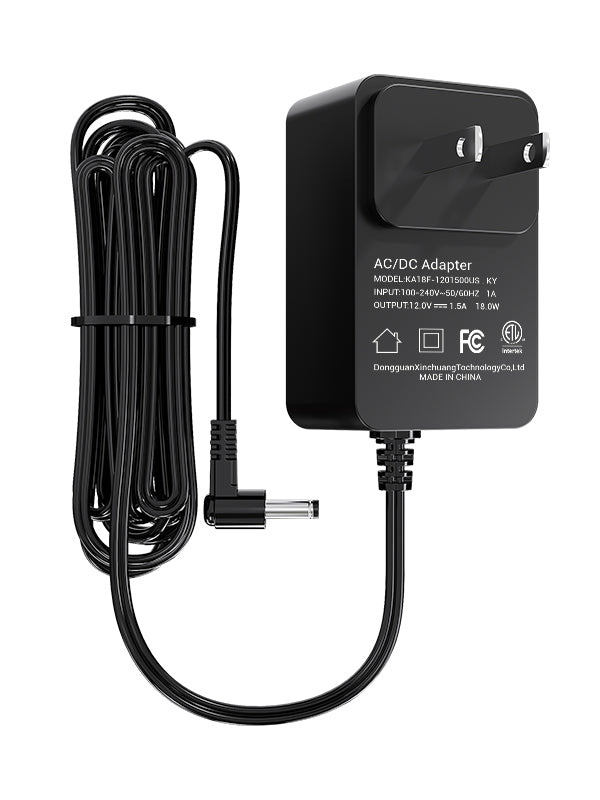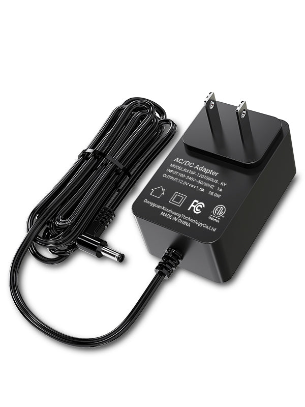 This 12V 1.5A power adapter efficiently converts AC 100-240V input to a stable DC 12V output with 1.5A current, ensuring reliable power supply for compatible devices.