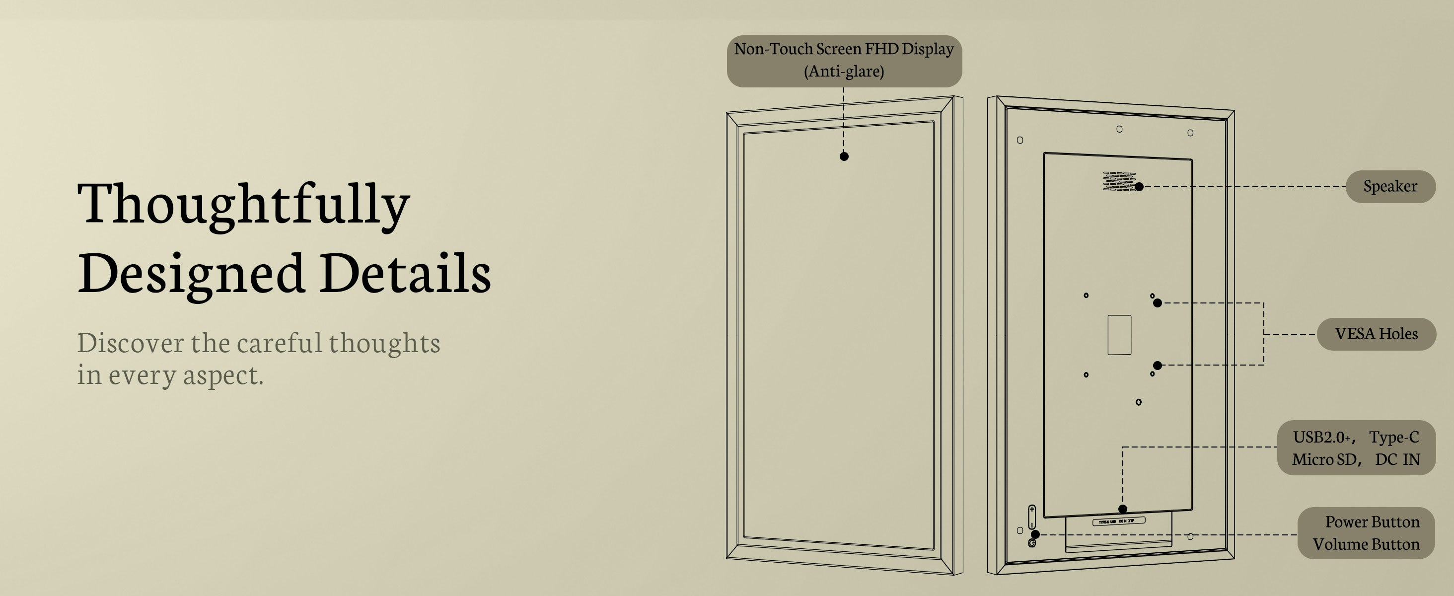 • The digital photo frame with unique bluetooth function provides an engaging multi-sensory aesthetic experience, allowing you to enjoy art piece with your favorite music.