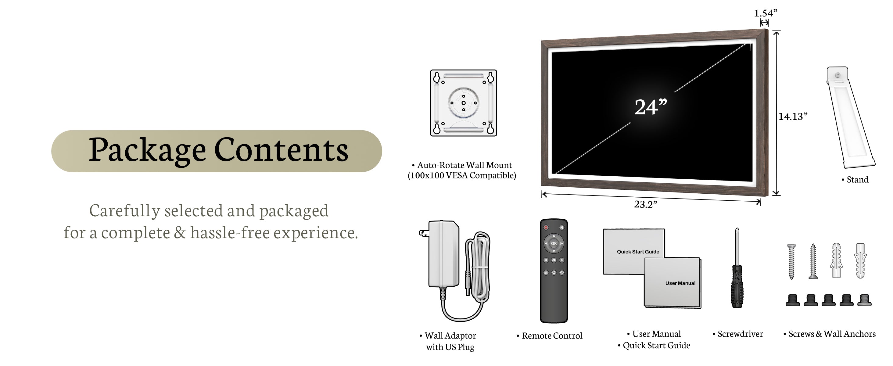 • 24 Inch FHD Matte Screen and Large Memory: BSIMB digital picture frame featured with 24 Inch 1920x1080 FHD IPS screen and an aspect ratio of 16:9, the digital photo frame displays stunning and clear images, which can revive the brushstrokes of the original painting. The digital frame built-in 32GB internal storage (holds 80,000+ pictures) with support for Micro SD Card (TF Card) and USB drive. The digital picture frames also with a remote control making it perfect for older or less tech-savvy people to operate. NOTE:The battery type for this remote is AAA+, not included in the package.