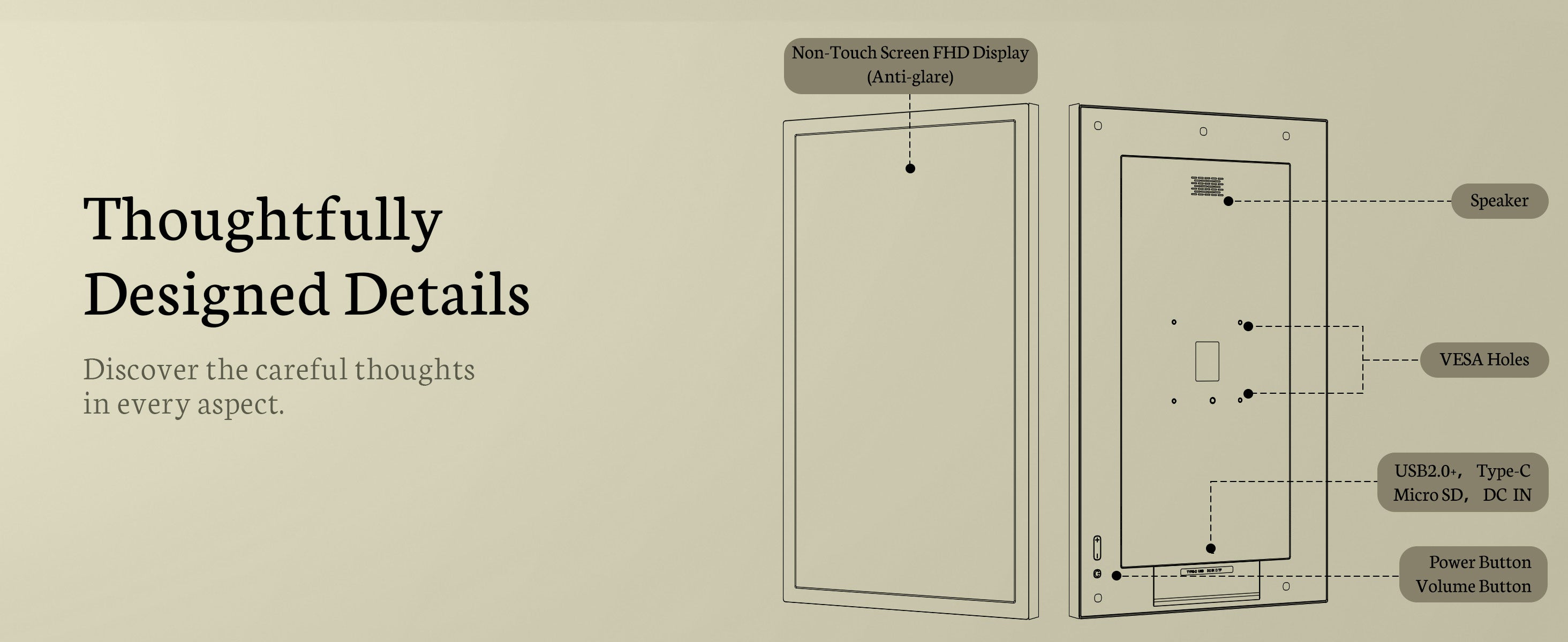 • The digital photo frame with unique bluetooth function provides an engaging multi-sensory aesthetic experience, allowing you to enjoy art piece with your favorite music.